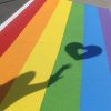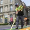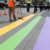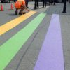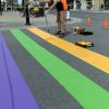 Prime Pavement Marking were busy on Saturday, June 1, 2019 on Second Street preparing the Rainbow Crosswalk for the unveiling on Monday, June 3, 2019 at 10 a.m.