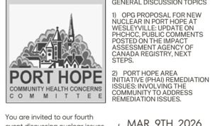 The Port Hope Community Health Concerns Committee is having their 4th in our Public Meeting Series "Nuclear Issues in