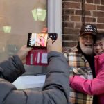 As soon as the couple pulled onto First Street in their jeep, her friends knew it was her and the cheering started.