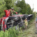 Shortly after 8 p.m., emergency services were dispatched to the area of Telephone Road just west of Herley Road for a transport truck that rolled on its side in a ditch north of Colborne.