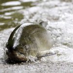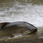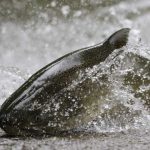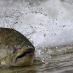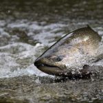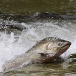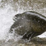 The salmon also have to fight their way upstream and over obstacles along the way, but in deeper water they rest for the next batch of obstacles and rapids.