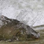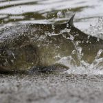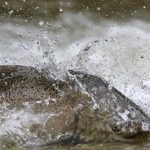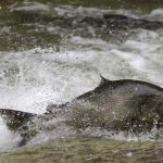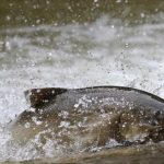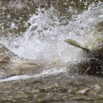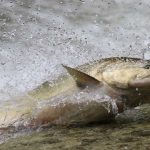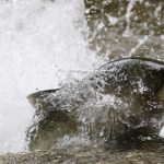 On Monday, August 19, 2024 at times there were so much water spraying as the fish made their way it up the rivers it gave the appearance of a run.