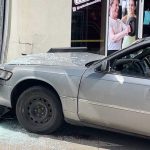 A board was in place at one of the businesses as another vehicle had struck the building recently.
