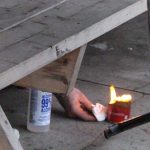When crews arrived they discovered a person had placed a plastic tarp over a picnic table and it appears put rubbing alcohol in a pop can and lit it on fire – using it for warmth.