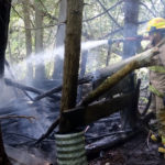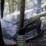 Firefighters responding could see the smoke coming from a wooded area. Firefighters quickly entered the area and soon found the fire was a fully involved fort that was built in the woods. With the amount of pop cans, and plastic water bottles it appears the fort was used often