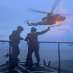 Search and Rescue Technicians (SARTECS) were lowered from the Griffon helicopter along with a stretcher to simulate a person injured on a vessel.