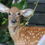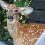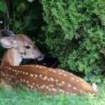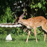 The fawn took a drink from Dolphins bird bath in her backyard. Numerous calls were placed to different agencies and rescue centres, but all seemed to have the same opinion of it’s best to leave it and let nature take its course.